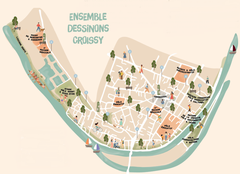 - Une signalétique piétonne encourageant la mobilité active et valorisant les lieux emblématiques de la commune. Un parcours du bord de Seine valorisé reliant mieux les parcs, les espaces de sports et les lieux de convivialité