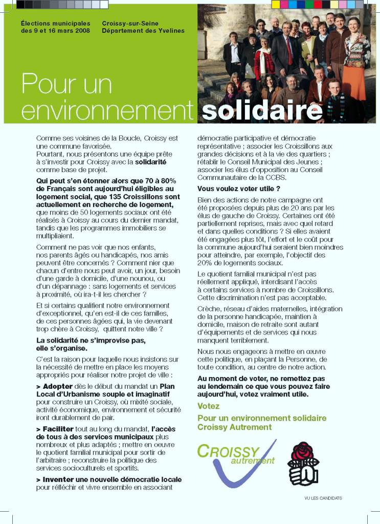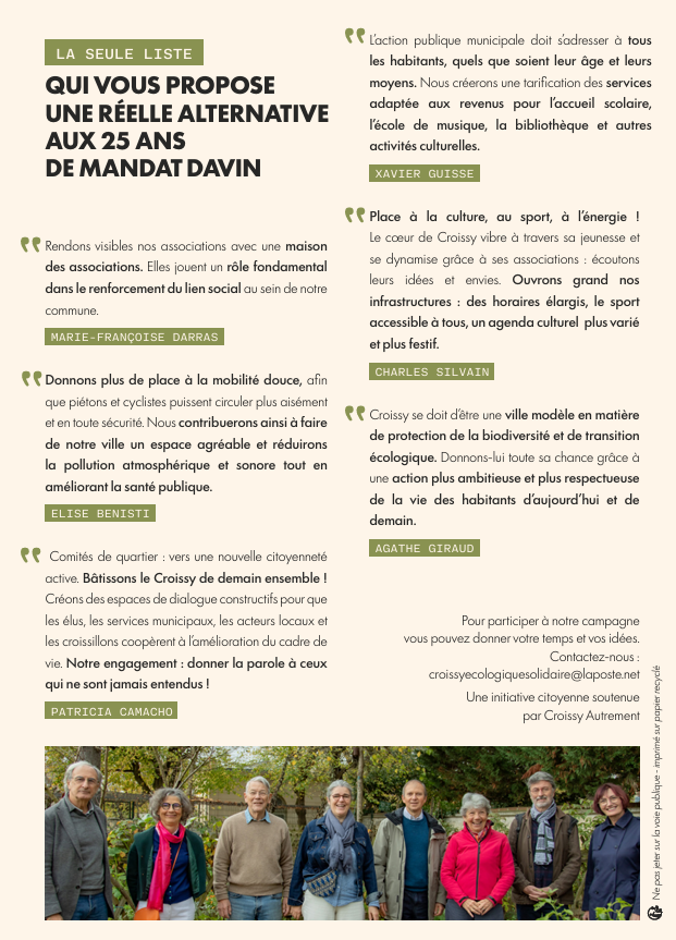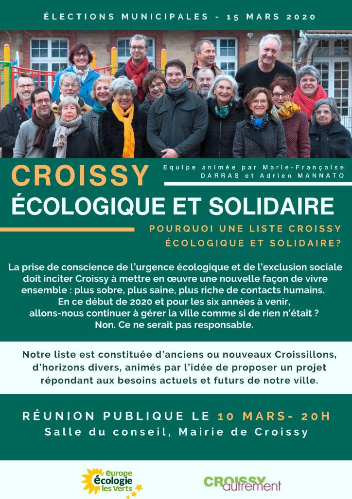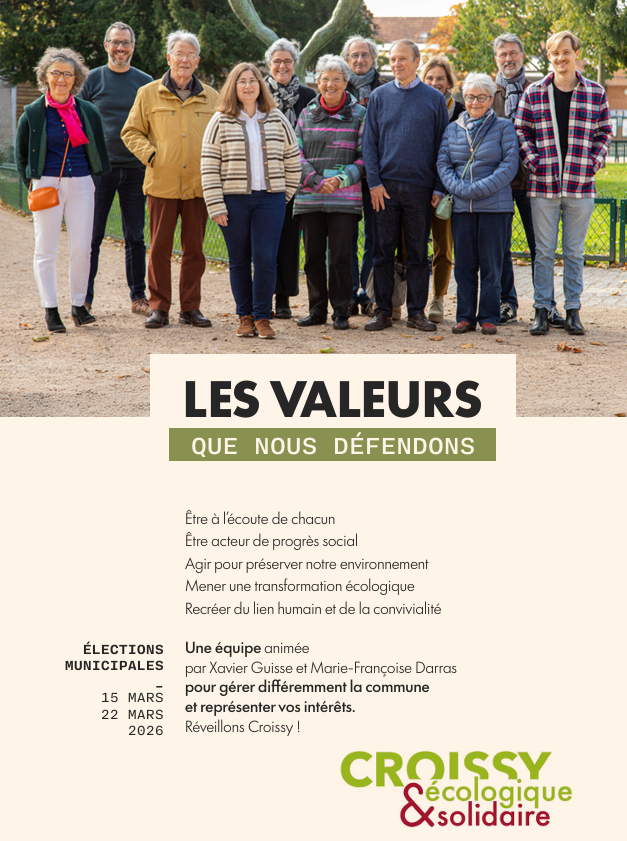 Réunion publique de la liste Croissy écologique et solidaire le 4 février 2026 à 20h00 en mairie.